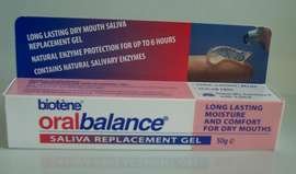 Biotene Oralbalance Saliva Replacement Gel Long Lasting Moisture And Comfort For Dry Mouths Refreshing Taste Helps Swallowing Oralbalance long lasting saliva replacement gel soothes the irritations and sensitivity resulting from mouth dryness. Contains Biotene Salivary Enzyme system that boosts the mouth's natural defences against harmful bacteria. Ingredients: Aqua, Hydrogenated Starch Hydrosylate, Xylitol, Hydroxyethyl Cellulose, Glycerate Polymethacrylate, Beta-D-Glucose, Lactoperoxidase, Lysozyme (12mg) Lactoferrin (12mg), Glucose Oxidase, Potassium Thiocyanate, Aloe Vera. Directions: Apply pleasant tasting, long lasting Biotene Oralbalance as often as needed, particularly at night. Place 1 - 2cm of the gel directly onto the tongue and spread thoroughly inside the mouth. Effective with denture wearers and mouth breathers.
